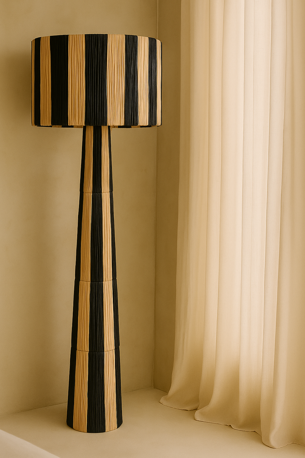 LÁMPARA DE PIE RAFIA RAYAS NEGRAS