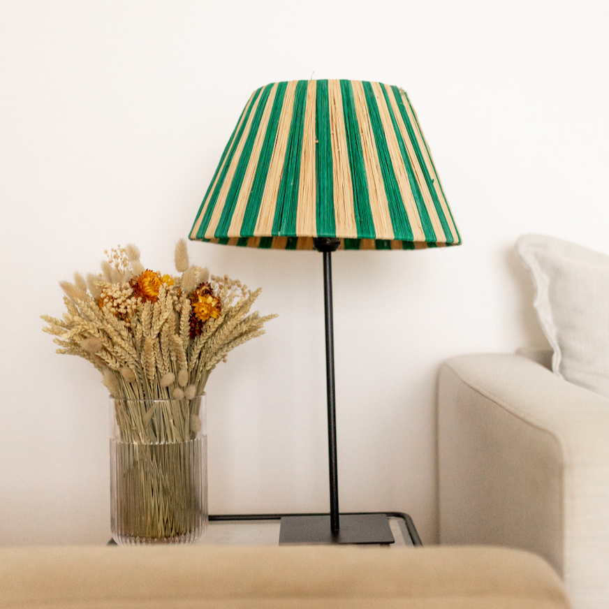 PANTALLA RAFIA NATURAL RAYAS VERDES